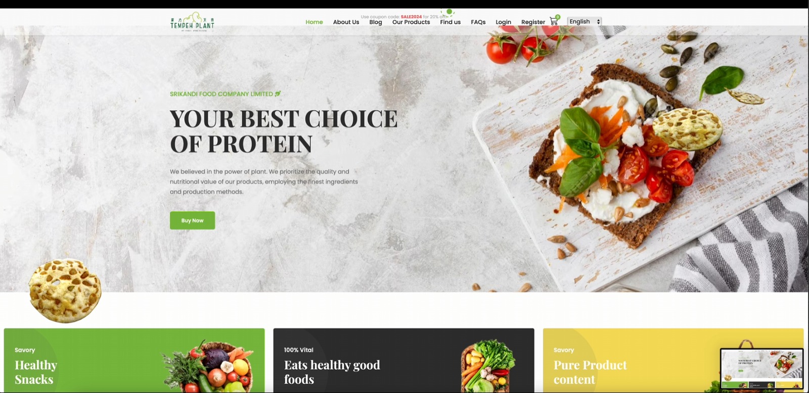 We developed Tempeh Plant, a fully functional eCommerce platform for a brand specializing in tempeh-based supplements and healthy snacks. The client’s goal was to create a modern, user-friendly website that showcased their plant-based protein products while making online shopping simple and enjoyable. We designed a clean, fresh interface that reflects the brand’s natural and healthy identity, highlighting product imagery, nutritional benefits, and unique selling points. The platform features an easy-to-navigate product catalog, a secure checkout system, coupon code integration, and multilingual support to reach a wider audience. Built with performance and scalability in mind, the site is optimized for mobile and desktop devices, ensuring fast loading times and a seamless shopping experience. One of the main challenges was blending an appealing lifestyle design with robust eCommerce functionality, which we achieved through careful UI/UX planning and smooth integration of product management and payment systems. The result is a visually appealing, conversion-focused platform that allows Tempeh Plant to promote its mission of healthy, plant-powered living.